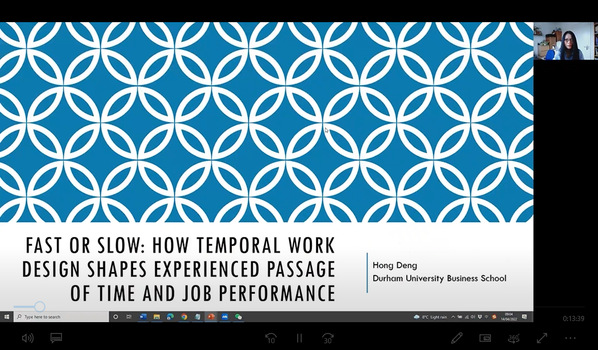 4月14日,英国杜伦大学教授邓红应经济与管理学院人力资源管理研究所和江苏省人力资源发展研究基地的邀请,在线上为永利官网师生作了题为“Fast or Slow: How Temporal Work Design Shapes Experienced Passage of Time and Job Performance”的精彩学术报告。本次报告由教授胡恩华主持,相关教师、博士生和硕士生参加了此次学术报告活动。