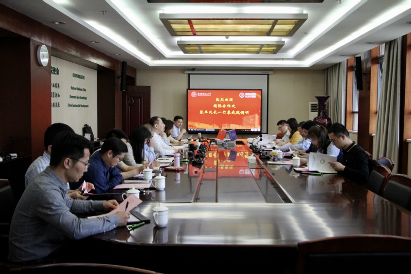 5月18日国际合作处处长张卓、副处长张国权、沈敏、综合事务科科长祖语嫣、国际合作项目科科长田立丰、出入境服务中心主任董峰来永利官网调研座谈。经管学院党委书记苏州、院长周德群、院党委副书记胡苹、副院长王子龙、谢乃明、查冬兰、院长助理蒋昕嘉、欧阳林寒、管工系系副主任达高峰、工商系赵亚普副教授、院国际合作事务秘书许志卓参加了此次调研。