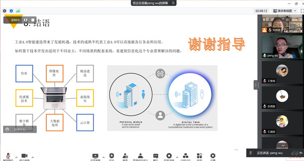 本次讲座中,吴鹏详细介绍了十多年来对建筑行业使用数字孪生技术的调查过程,包括数字模型构建,实时数据收集和大数据分析。并提供了建筑、道路、石油和天然气行业的真实案例研究,以证明这些技术的实用性。最后,还讨论了数字孪生技术在业界的未来发展趋势。
