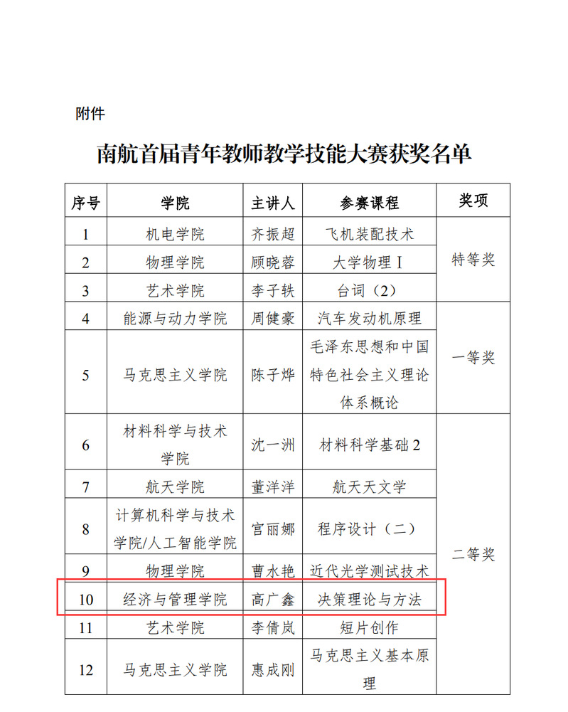 经过学院推荐、校级初赛、校级决赛的激烈角逐,永利官网管理科学与工程系高广鑫老师脱颖而出,荣获二等奖的佳绩!