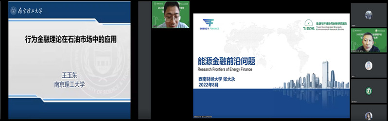 8月15日,南京理工大学经济与管理学院副院长王玉东教授围绕“行为金融理论在石油市场中的应用研究”主题进行授课,介绍了行为金融的相关理论,分析了行为金融理论在石油市场以及其他能源市场中的相关应用。西南财经大学经济与管理研究院张大永教授围绕 “能源金融前沿”主题进行授课,阐述了能源金融的相关概念,讲解了能源的定价机制,介绍了能源与公司金融的关系,提出了能源金融的前沿方向。