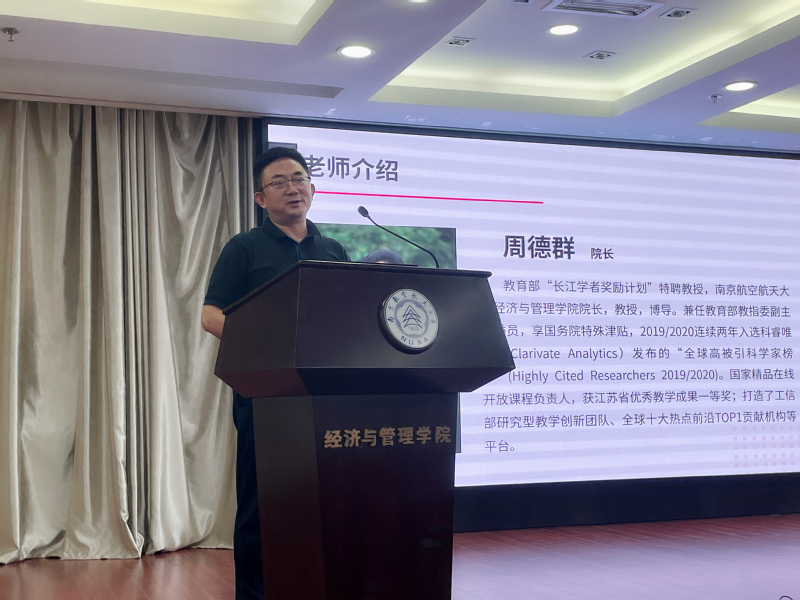 师生大会在2022级新生的自我介绍视频中拉开序幕。致辞环节,中心主任周德群对2022级新生表示了热烈欢迎,对研究中心的发展历程、中心文化、师资队伍、品牌活动等做了详细介绍,并鼓励同学们要有格局,要走出南航,走向世界,在更广阔的领域里实现人生价值。