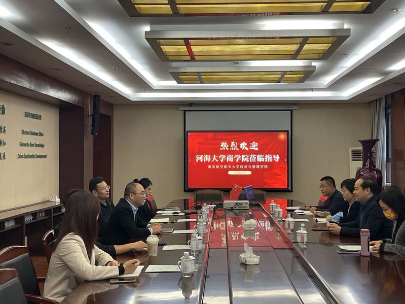 王子龙副院长代表学院对河海大学商学院的到访表示热烈欢迎,通过宣传片介绍了学院的历史沿革、办学特色与发展目标,分享了近年来专业硕士相关专业的招生、教学管理与论文质量管控情况。随后,双方就共同承办工商管理案例大赛展开了深入探讨。